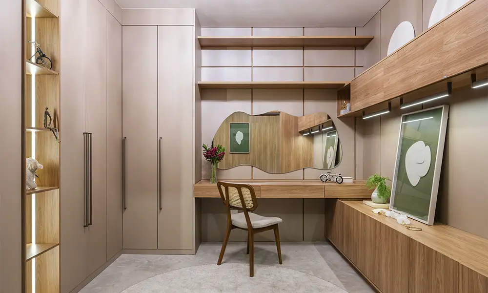 Uma das vantagens pouco comentadas dos móveis planejados sob medida é que eles acompanham a lógica de uso de cada pessoa, e não uma lógica padrão. Se você é destro e acessa o armário sempre pelo lado esquerdo, o projeto pode prever isso. Se você tem um objeto específico que precisa de espaço com dimensão diferente do padrão, isso entra no projeto. Se a sua rotina exige que certos itens estejam acessíveis sem esforço e outros podem ficar guardados, a divisão interna do móvel reflete exatamente essa hierarquia de uso.